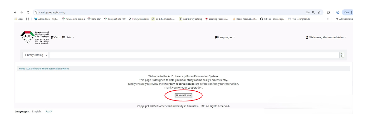 In our ongoing efforts to improve user experience and streamline access to library services, the AUE Library has successfully launched an online study room booking system through our library portal, powered by KOHA. This new system allows students to conveniently reserve study spaces in advance, ensuring a more organized and efficient use of library facilities.